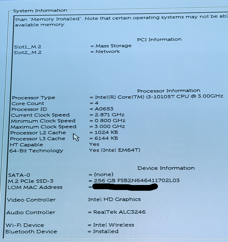 Model name: Intel(R) Core(TM) i3-10105T CPU @ 3.00GHz