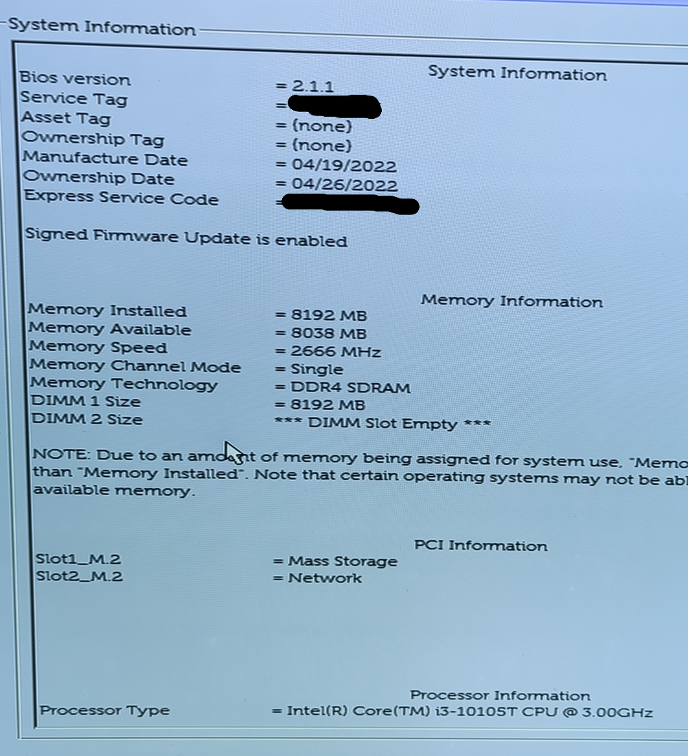 BIOS Model name: Intel(R) Core(TM) i3-10105T CPU @ 3.00GHz CPU @ 2.8GHz