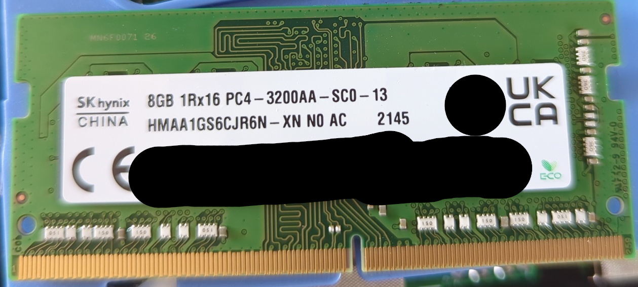 - 1x 8GB 1Rx16 PC4-3200AA SOSIMM SK hynix